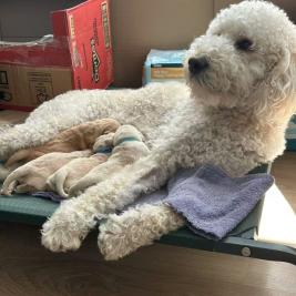 We are exited to introduce our gorgeous litter of 8 puppies --3 girls and 5 boys. Born to our beloved family dog Luna (2 year old labradoodle) and 2 year old Goldendoodle dad.